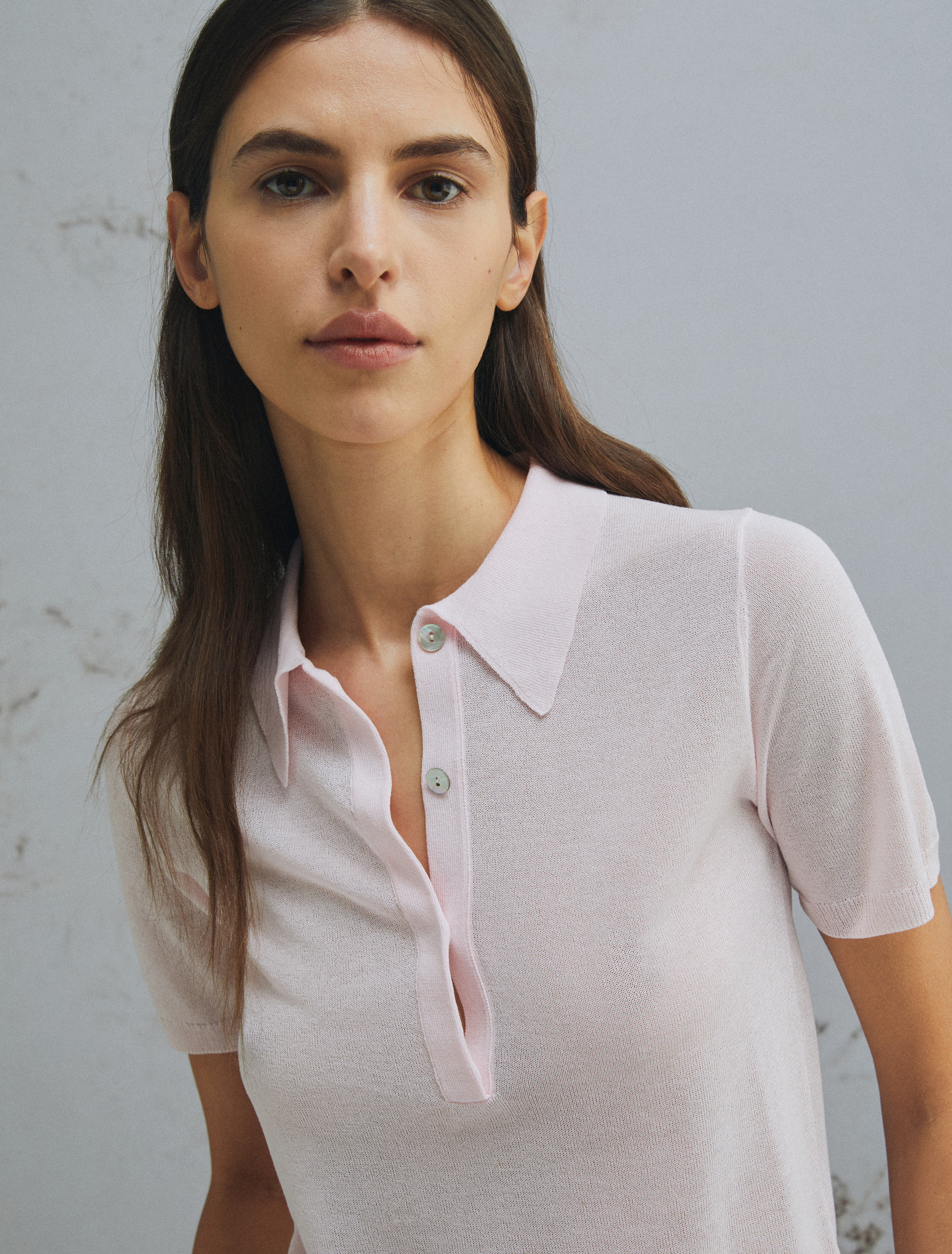 Ce polo en maille légère est le nouveau must-have du printemps : avec l’effet tulle et le côté épuré de ses lignes, il se marie avec les modèles 5 poches colorés ou les jupes de la collection dans un mélange de décontraction et de raffinement.